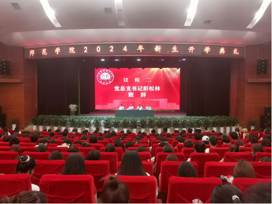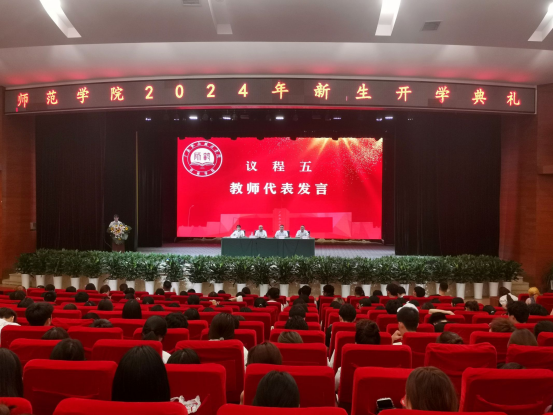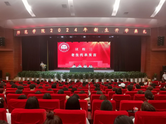 随后,老生代表何梓汇鼓励学弟学妹们要怀揣青春梦想,砥砺向前,成为更好的自己;新生代表吴冰沭表达了对大学生活的憧憬,并表示将努力用青春之笔书写出未来的华美篇章;教师代表陈香帆寄语新生要不断拓展视野,提升综合能力,展现自信风采。典礼最后,副经理贺雪萍带领全体师范生进行了庄严的宣誓,进一步坚定了新生们为儿童教育事业奋斗的决心。