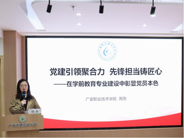 周燕教授以《党建引领聚合力·先锋担当铸匠心》为题,结合“学前实干”支部工作法,介绍了党员教师在课程研发、人才培养、师德建设中的示范领航先进事迹,强调了党建不是抽象符号,而是托举学前教育事业拔节生长的蓬勃力量。