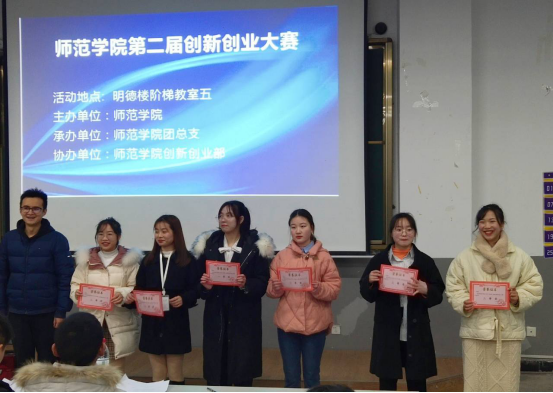 李勇在致辞中以他自己大学时的创业经历鼓励同学们要敢闯敢拼,坚持不懈,成就出彩人生。此次大赛由六组进入决赛的队伍组成。在比赛过程中,各团队发言人台风稳健,讲述生动,从项目主旨、产品介绍、市场分析、核心竞争力和团队管理等方面做了详细的创业计划介绍。评委们基于创业方案完整性和可行性进行仔细评审,对各组发言人进行了专业的提问和建议。经过激烈的竞争,19级语文教育5班团队的“青春校园”项目拿下了大赛一等奖。比赛最后,三位优秀老员工创业代表分享了自身创业经历,并鼓励同学们积极进取,勇于创业。