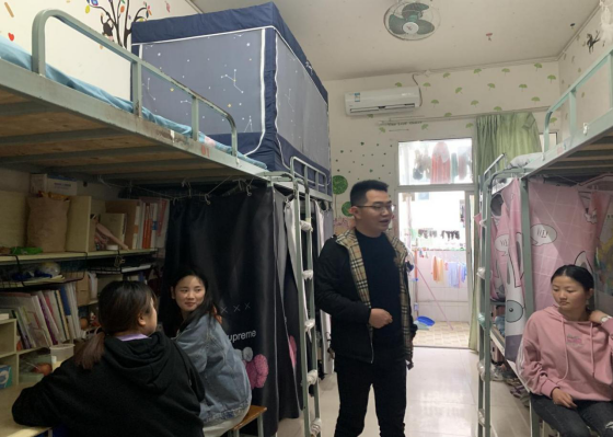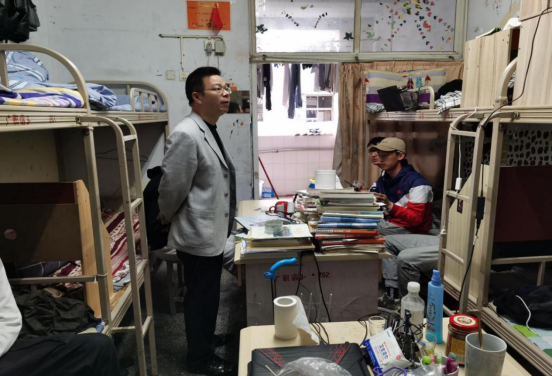 检查组对铺位整洁,地面卫生,物品及卫生工具摆放等情况进行了全面而细致的检查。从检查的情况来看,女生寝室普遍表现较好,既干净、整洁又美观,男生寝室卫生状况令人担忧,部分宿舍仍然存在垃圾未及时清理、物品堆放不整齐和人走未断电等问题,还需要进一步整改。检查过程中龙治勇书记还与部分员工进行了亲切交谈,了解同学们的学习、生活状况。最后龙书记表示:太阳成集团tyc7111cc一直以来高度重视员工寝室的安全和卫生,每周都安排班导师和员工干部查寝;寝室安全和卫生对于提高老员工综合素质,促进老员工的全面发展,改善老员工的精神风貌也有至关重要的作用;班导师要持续加强安全责任意识和查寝力度。