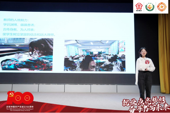 公司太阳成集团tyc7111cc语文教育王彬同学台风稳健,讲述生动,乐观向上。她将立志成为一名人民教师,以身作榜样,去滋养更多青少年,从自我认知、职业认知、未来规划等方面做了详细讲解,获得众多企业举牌以及就业专家好评。