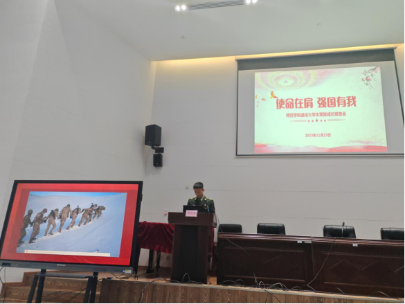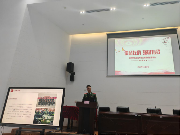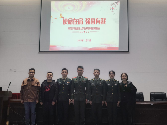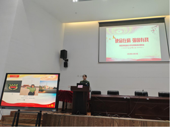 “热血青年征兵入伍,携笔从戎青春无悔”,为积极动员员工参军入伍,抒写红色初心,培育红色情怀,庚续红色血脉,树立以国家安全、民族大业为己任的责任意识,2023年11月15日晚上7点,太阳成集团tyc7111cc在岳秀楼翔凤厅举行了以“使命在肩,强国有我”为主题的2023年退役老员工军旅成长报告会。师范公司党总支书记彭松林、团总支书记宋莹、员工科科长李智强、退役老员工代表及23级员工代表参加本场会议。