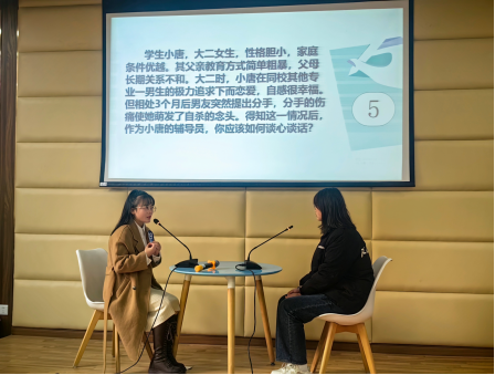 本次比赛由校员工工作部主办,经过笔试选拔初评,共有10名辅导员进入决赛。决赛全面对标省赛新赛制,分为案例研讨、谈心谈话两个环节,聚焦辅导员理论水平、职业能力和专业素质,综合考察辅导员的分析、判断、应变、协调、沟通等素质能力。