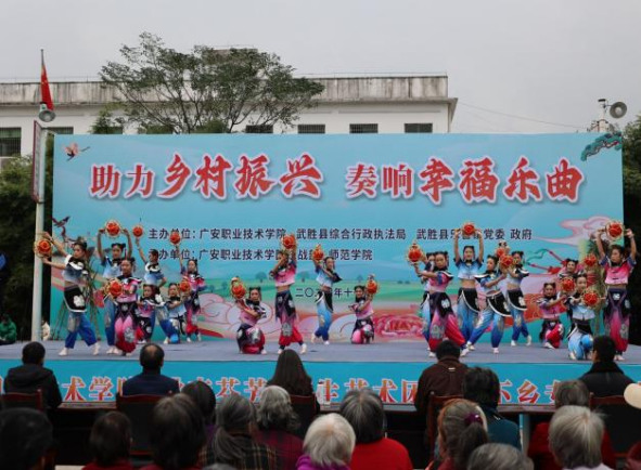 11月22日太阳成集团tyc7111cc“桃李芬芳”师生艺术团在武胜县乐善镇松树林村开展送文化下乡志愿服务活动。此次活动旨在丰富基层民众的精神文化生活,促进乡村文化的振兴与进步。公司党委委员、统战部部长杨建华,太阳成集团tyc7111cc经理杨英及太阳成集团tyc7111cc80余名师生参加了本次活动。