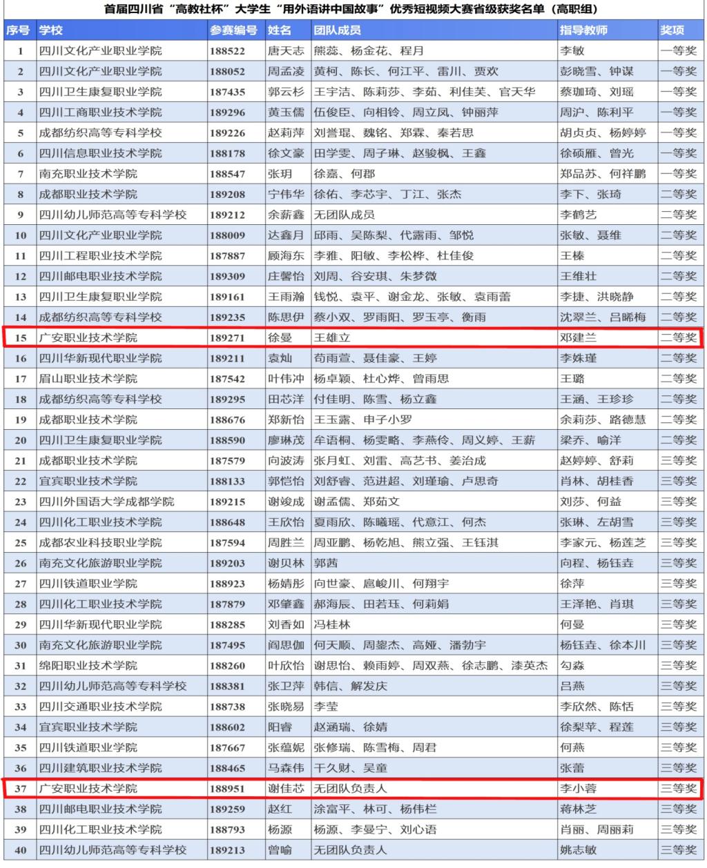 10月31日,首届四川省“高教社杯”大学“用外语讲中国故事”优秀短视频大赛结果公布,太阳成集团tyc7111cc2020级小学教育专业员工徐曼和她的团队成员荣获二等奖,2021级英语教育专业员工谢佳芯荣获三等奖,喜获佳绩。
