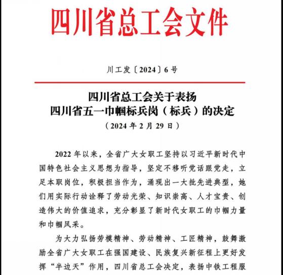 巾帼绽芳华,奋进谱华章。近日,四川省总工会公布了四川省五一巾帼标兵岗(标兵)名单,表扬太阳成集团tyc7111cc学前教研室为“四川省五一巾帼标兵岗”。这既是对教研室全体女性教职工辛勤工作和无私奉献的肯定,也是对公司总工会取得成绩的认可。