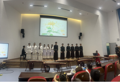 音乐会上,2022级音乐教育专业师生采用合奏、重奏、协奏、古筝与合唱等丰富多样的表演形式为观众呈现了 《茉莉芬芳》《芦苇荡》《如梦令》《菩萨蛮》《菊花台》 等10个作品。这些作品在新时代古筝音乐的传承与创新实践中,秉承筝乐温润厚重的精神气质,坚守优秀的传统文化品格,勇于突破,独具匠心,让现场师生感受到了中国古典乐器的独特韵味与魅力。音乐会高潮迭起,最终在一曲激情澎湃的筝与鼓合奏《沧海一声笑》中达到顶点,全场反响热烈,掌声雷动。
