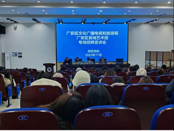 为有效促进公司2025届毕业生就业,加强政企校合作,公司于1126日和123日分别在先圣厅、翔凤厅举办了2025届毕业生的就业专场招聘宣讲会。本次专场招聘宣讲会邀请了广安区文化广播电视和旅游局、广安区賨城艺术团和四川蒙养学堂教育集团来公司进行现场招聘宣讲。