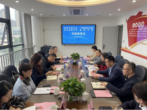11月4日下午,成都市锦江区综合高级中学(成都现代职业技术学校)一行6人在副董事长彭云强的带领下,到公司开展考察交流活动。双方围绕“中高职衔接五年贯通培养”合作事宜进行了深入座谈,共谋人才培养新路径。
